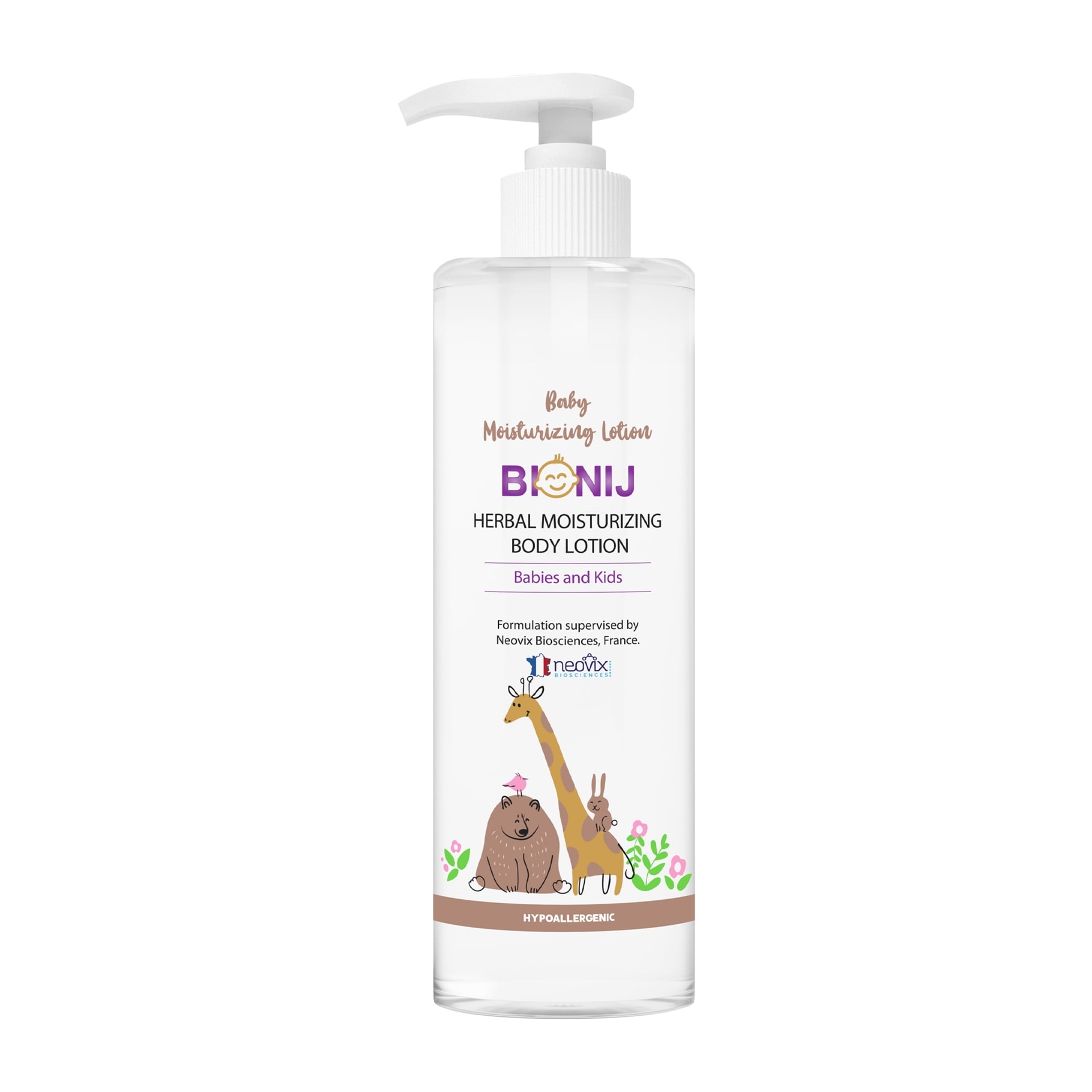 لوسیون مرطوب کننده گیاهی بیونیج مخصوص بدن نوزادان و کودکان با رطوبت رسانی فوری و مداوم، مناسب استفاده روزانه برای پوست بدن از بدو تولد است. عوامل گیاهی موثر و غنی از ویتامینها و اسیدهای چرب ضروری مانند شی باتر، روغن بادام شیرین، روغن کالندولا، عصاره بابونه و آلوئه ورا علاوه بر حفظ لایه اپیدرم حساس پوست بدن کودک در برابر آسیبهای خارجی و افزایش مقاومت سطح پوست، نرمی و لطافت پوست را به ارمغان میآورد.