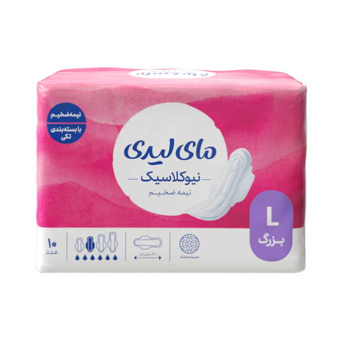 نوار بهداشتی بالدار نیمه ضخیم مشبک سایز بزرگ مای لیدی 10 عددی