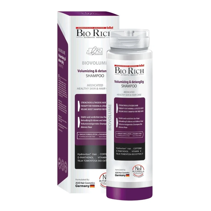 شامپو حجم دهنده بایوریچ با داشتن ترکیبات موثر، علاوه بر حجم دهندگی موهای نازک و ضعیف، به تقویت و کاهش ریزش موهای شما کمک می کند. این شامپو ضمن داشتن قدرت پاک کنندگی مناسب، بدون ایجاد حس سنگینی موهای شما را خوش حالت کرده و به افزایش حجم موهای نازک و بی حالت شما کمک کرده و ضخامت تارهای ضعیف موهای شما را افزایش می دهد.