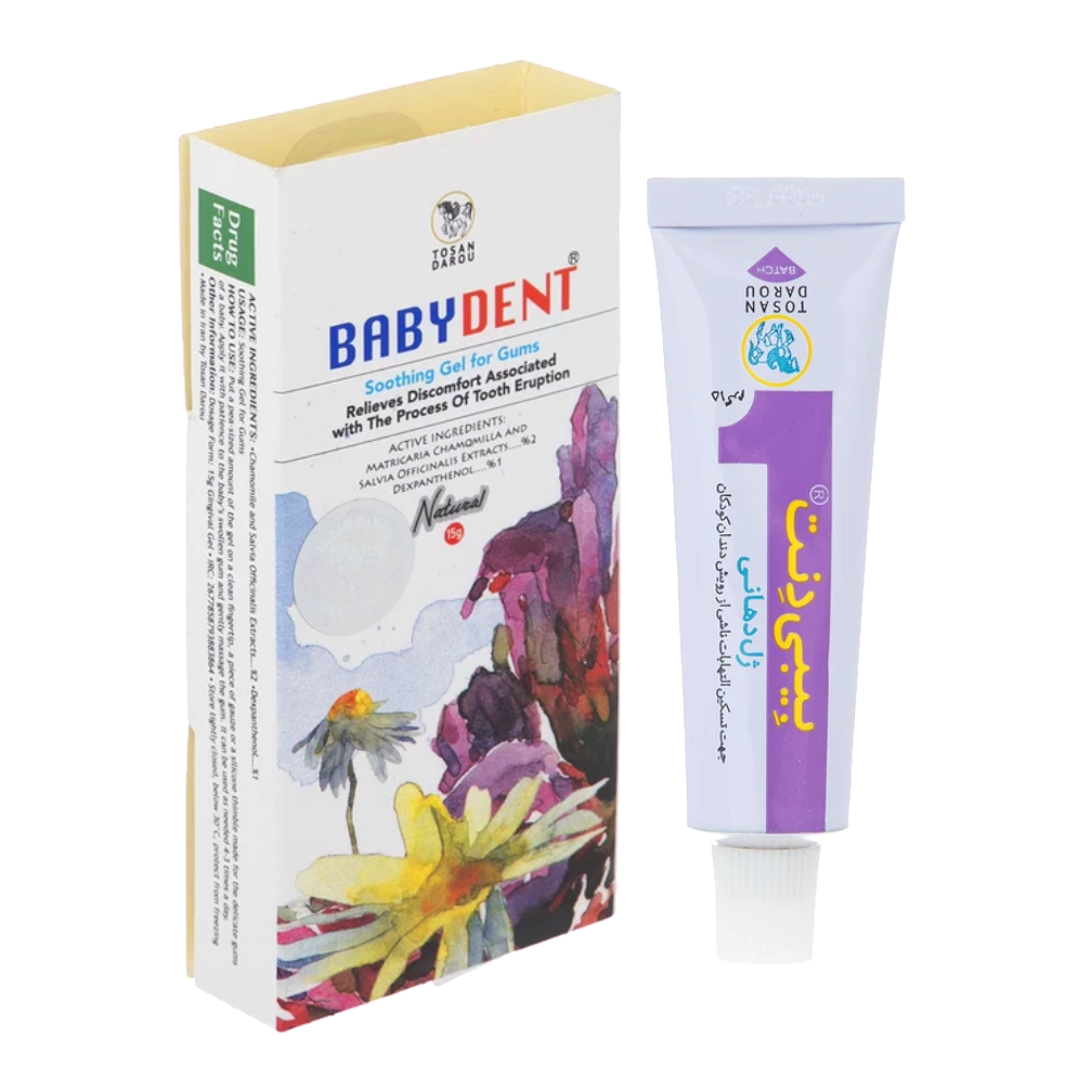 نحوه مصرف: مقدار کمی به اندازه یک نخود از ژل بیبی دنت را روی انگشت گذاشته، سطح لثه را به آرامی و با ملایمت ماساژ دهید. این کار را می توانید 3 تا 4 بار در روز تکرار نمایید. همچنین برای ماساژ بسیار آرام لثه کودک می توان از پارچه نخی مرطوب، دندان گیر سیلیکونی یا یک قاشق فلزی مناسب استفاده نمود. قرار دادن ژل بیبی دنت و یا وسایل ماساژ فوق در یخچال، به دلیل خنک شدن تاثیر بیشتری در تسکین درد دارد. دقت نمایید که خنکی به حد یخ زدگی نرسد زیرا باعث آسیب به بافت لثه خواهد شد. بزاق را از صورت کودک پاک نمایید. در صورت بیقراری می توانید از قطره استامینوفن هم استفاده نمایید.