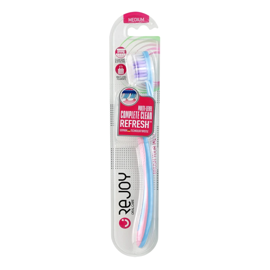 مسواک ری فرش ریجوی دارای الیاف بلند و کوتاه است. الیاف بلندتر و رنگی، فضای درونی و الیاف کوتاه تر سطح بیرونی دندانها را پاک می کند. انتهای الیاف مسواک Refresh گرد شده تا از سلامت مینای دندان و لثه ی حساس اطمینان حاصل شود. زبان شوی این مسواک میکروب های سطح زبان را از بین برده و دسته ی ضد لغزش این محصول راحتی شما را در زمان مسواک زدن تضمین می کند.