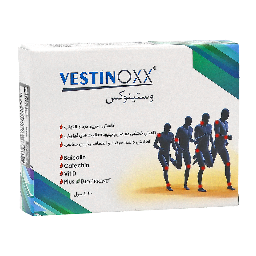 وستینوکس یک داروی گیاهی منحصر به فرد است که دارای اثر اثبات شده کلینیکی برای کاهش درد و خشکی مفاصل و افزایش دامنه حرکت یا همان Range of Motion می باشد. وستینوکس حاوی فلاونوئید های استاندارد شده دو گیاه اسکوتلاریا (نوعی گیاه از تیره نعناعیان) و آکاسیا (صمغ عربی) در کنار بایوپرین®، ویتامین C و ویتامین D است.