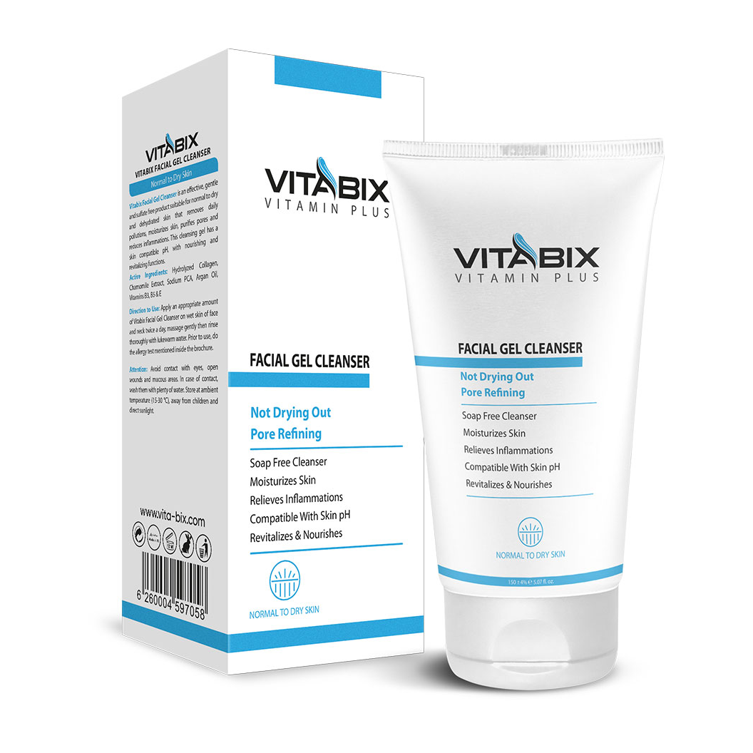 ژل شستشوی صورت ویتامینه ویتابیکس، شوینده موثر و ملایم فاقد سولفات مناسب پوست های معمولی ، خشک و دهیدراته است که با برطرف کردن آلودگی های روزانه و رطوبت رسانی به پوست، منافذ را پاکسازی نموده و به تسکین التهابات کمک می نماید. این محصول دارای pH سازگار با پوست می باشد و ضمن شستشو به تغذیه، تقویت و بازسازی پوست کمک می کند.